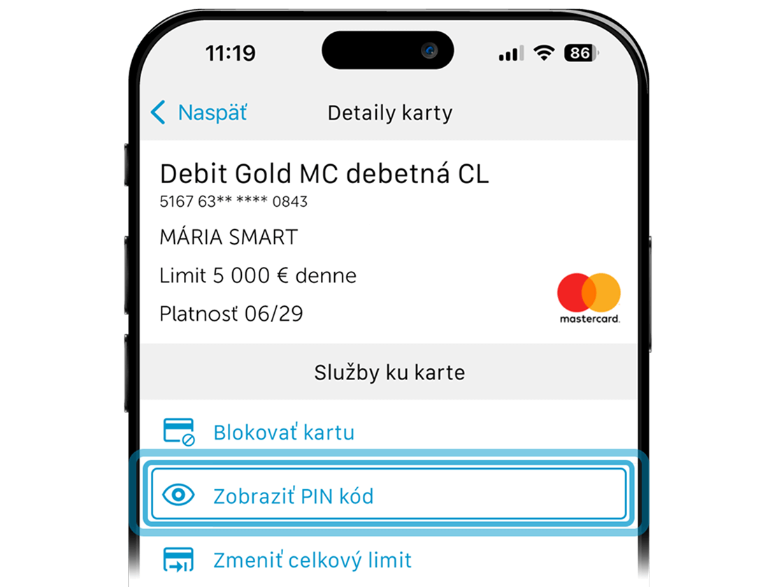 Z ponuky vyberte kartu, ktorej PIN kód chcete zobraziť.